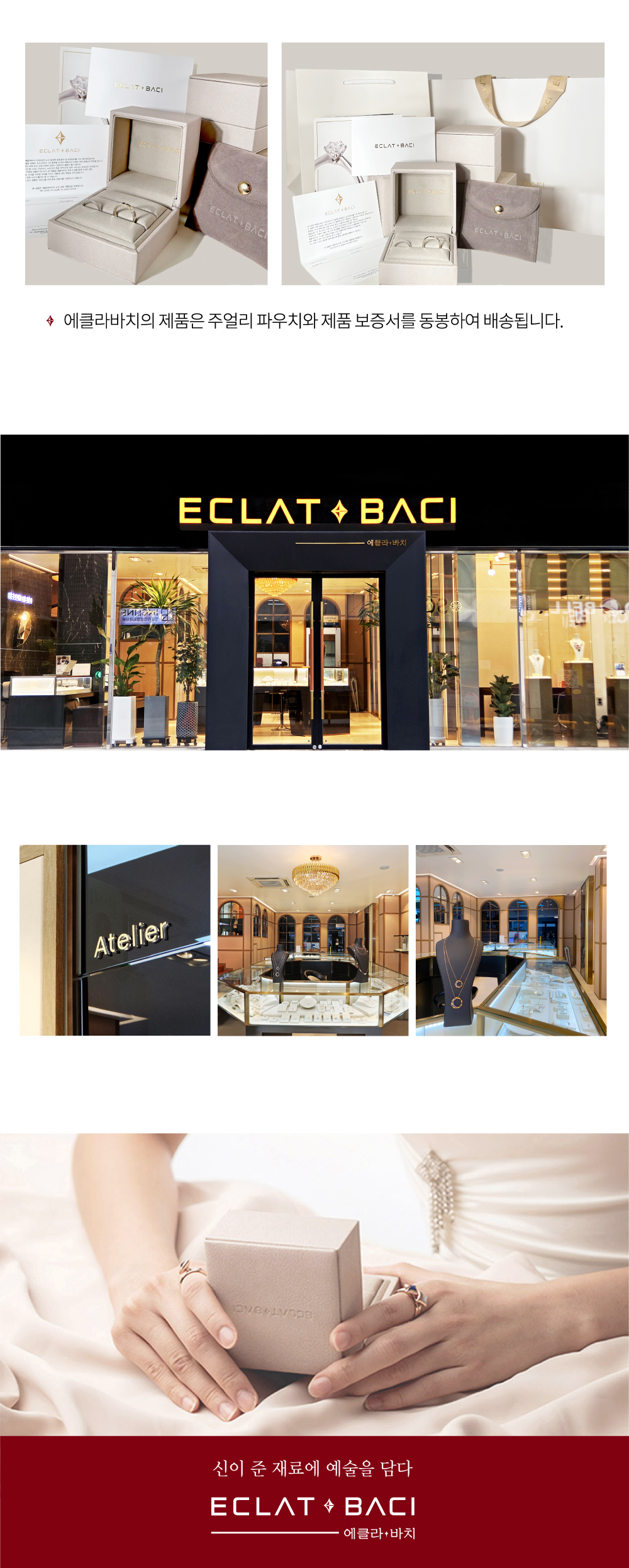 - 샤워, 취침, 운동 시에는 주얼리 착용을 삼가 주십시오. 광택 저하, 스톤 탈색, 끊어짐의 원인이 됩니다.